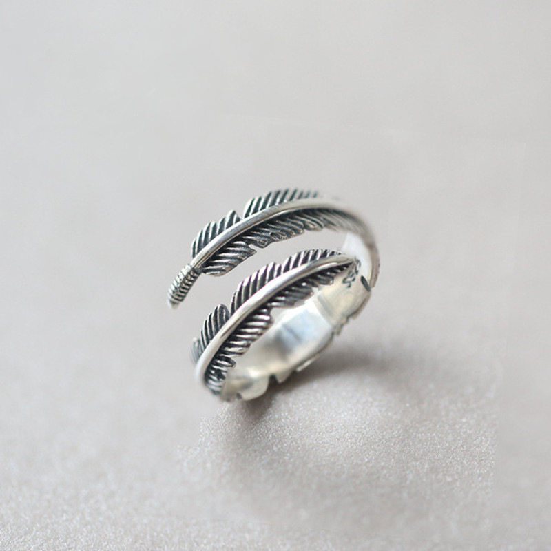 925 sterling silver feather Thai silver ring cross-border simple ring retro Roman ins style European and American ring spot wholesale