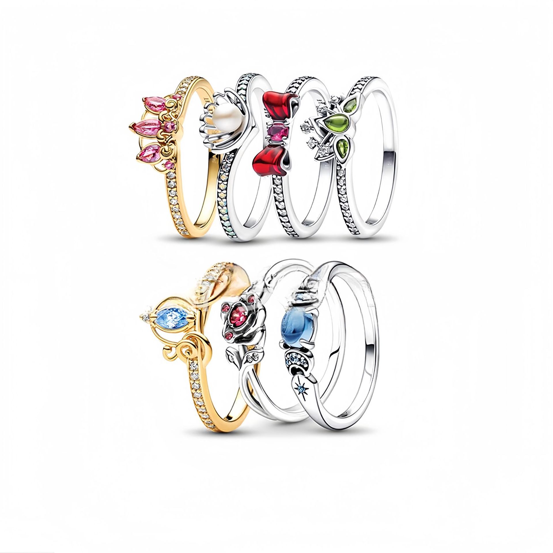 Panjia Dora Ring 925 Sterling Silver Noble Heart Red Love Ring Pearl Gold Multi-Ring Ring
