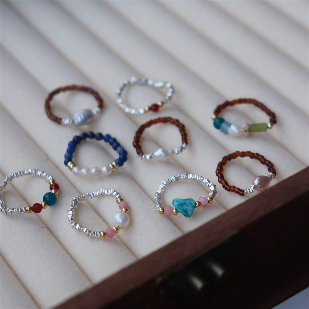 S925 Sterling Silver Bow Beaded Ring Women's Exquisite Sweet Cool Style Pearl Black Onyx Reflex Rope Finger Ring Niche