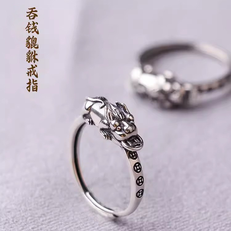 Vintage Thai Silver Creative Money Brave Ring Female Mascot Eight Guardians Old Jewelry Male Index Finger Ring
