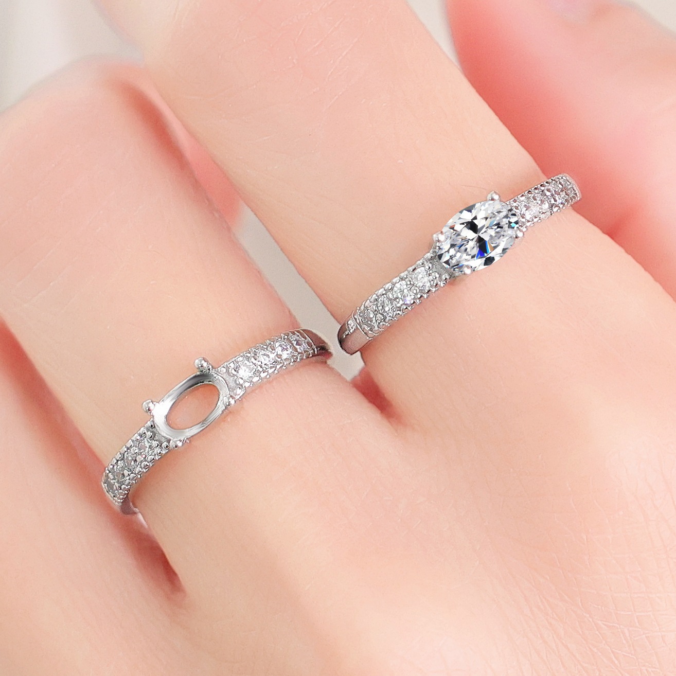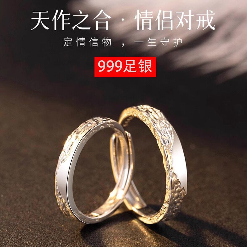 Cross-border Quick Hand Sterling Silver Jewelry Open Couple Ring Women's Six-claw Wedding Ring Pair Ring Online Red Live Stall Supply
