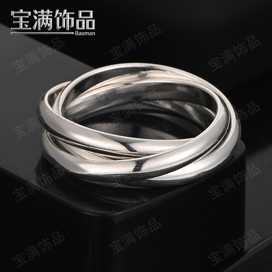Aliexpress Hot-Selling Silver Jewelry Wholesale Simple Smooth 3-Ring Ring Plated 925 Silver Jewelry Women's Ring