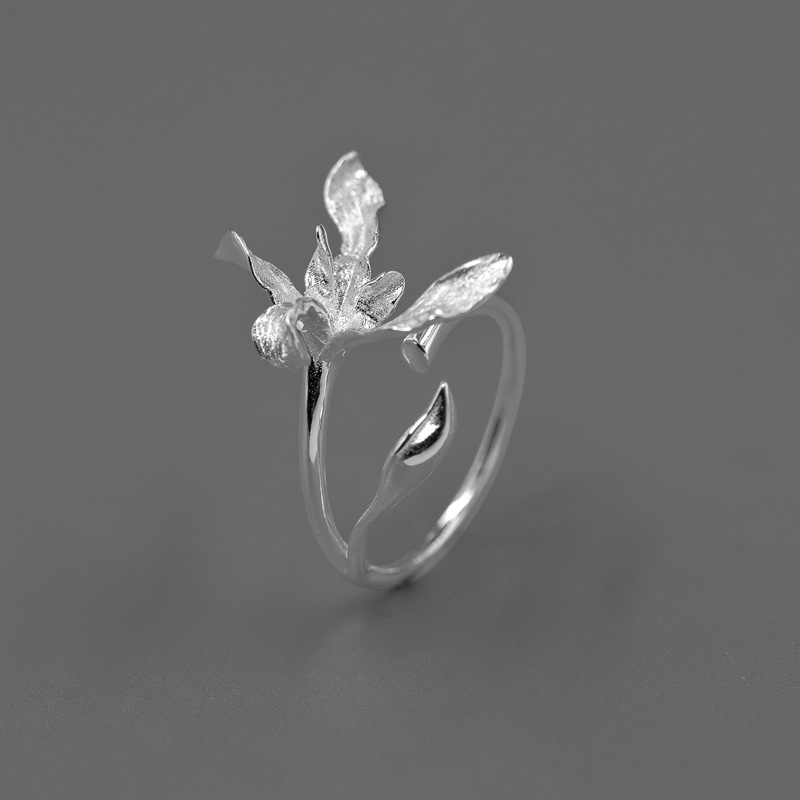 To find an original empty valley orchid sterling silver new Chinese style elegant new Chinese style orchid flower art opening ring