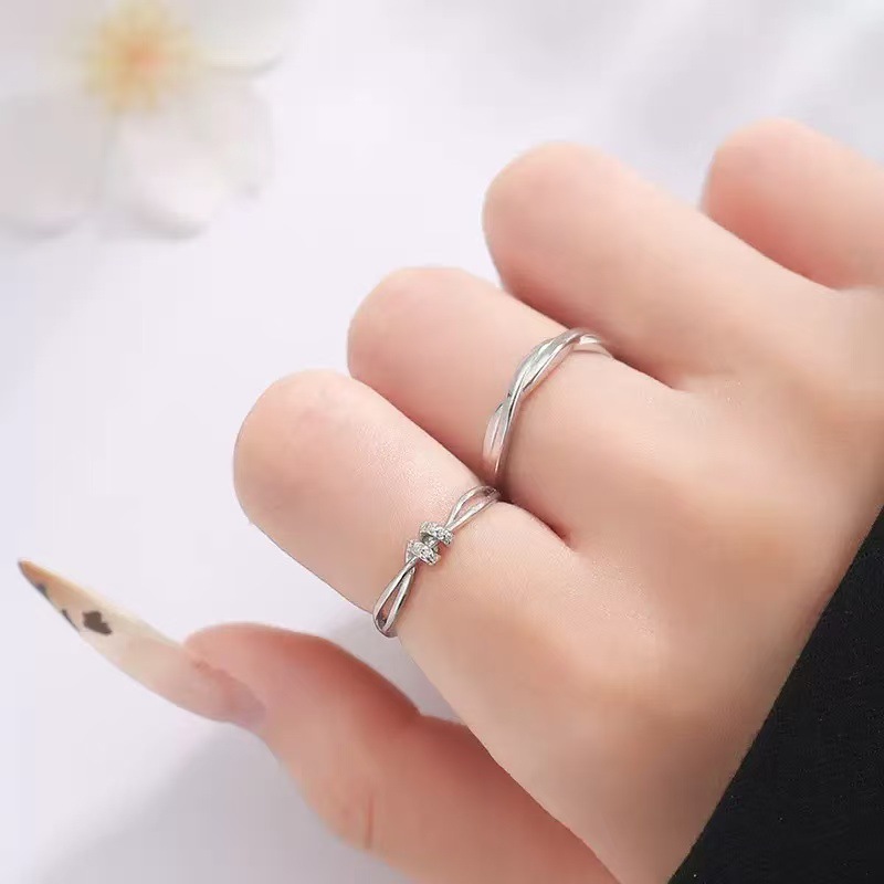 Love Interwoven Couple's Ring s999 Sterling Silver Minimalist All-match Niche Ring Mobius Silver Bracelet