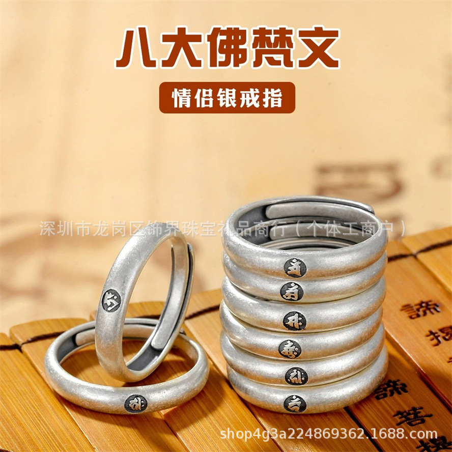 S999 Sterling Silver Ring Zodiac Benmingfo Eight Patron saint Opening Ring Lucky Retro Couple's Ring
