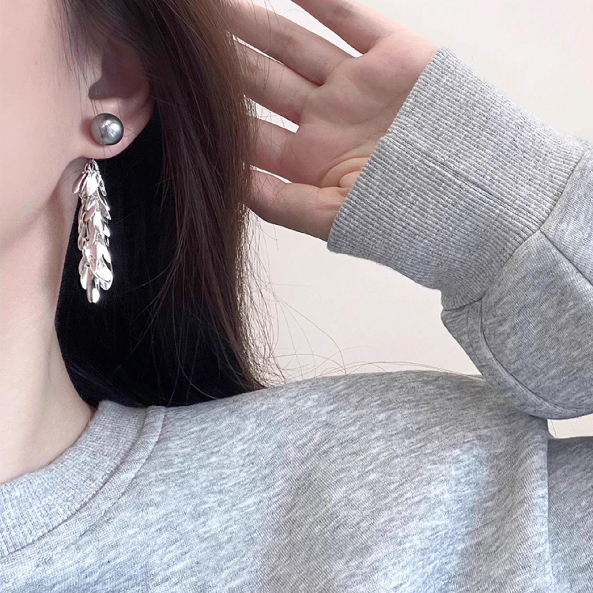 Sparkling Wheat Ear Clip Tassel Grey Pearl Earrings Sterling Silver Autumn and Winter Two Earrings Niche Advanced Earrings