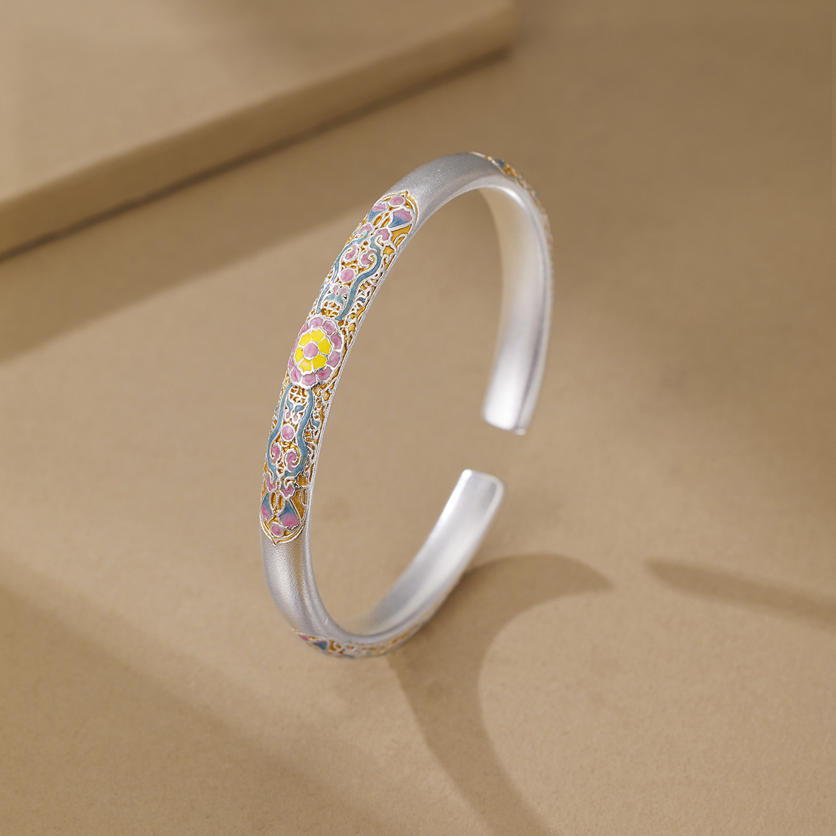 Tiktok Hot-Selling Copper Silver-Plated Enamel Begonia Flower Scroll Pattern Bracelet New Chinese Style Hollow Begonia Flower Bracelet