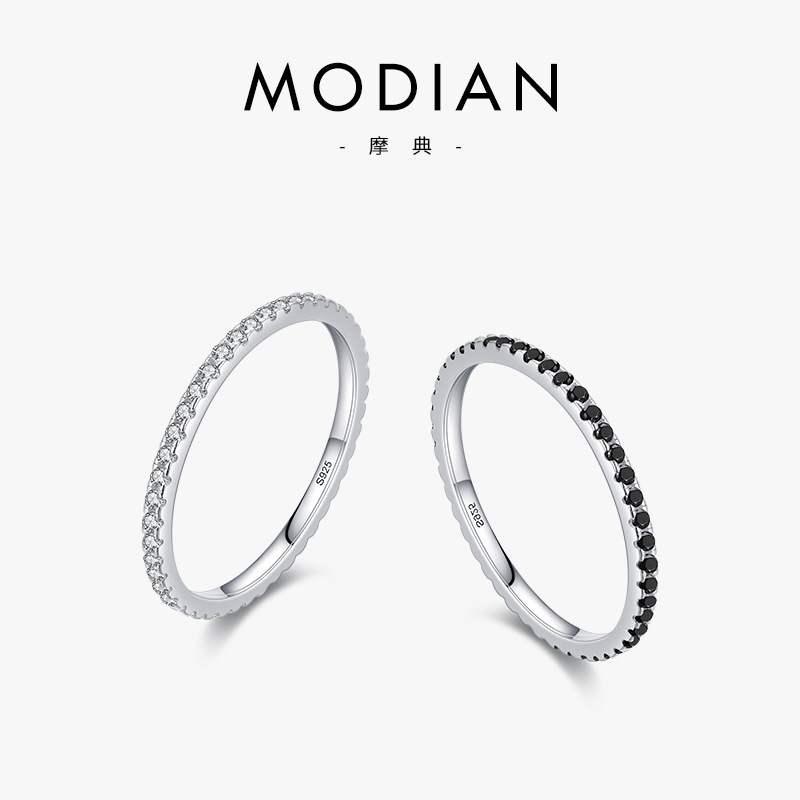 Modian Japanese and Korean Diamond Ring S925 Sterling Silver Ring Women's Design Niche Simple Row Diamond Ring Women's Tail Ring Jewelry