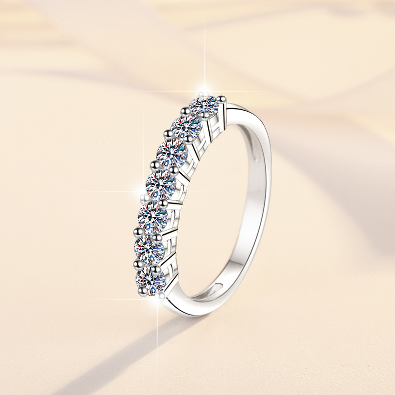 S925 Sterling Silver Women's Ring Seven-Star Row Ring Seven Princess Crown Stacked Ring Moissanite Ring Factory Ready Stock