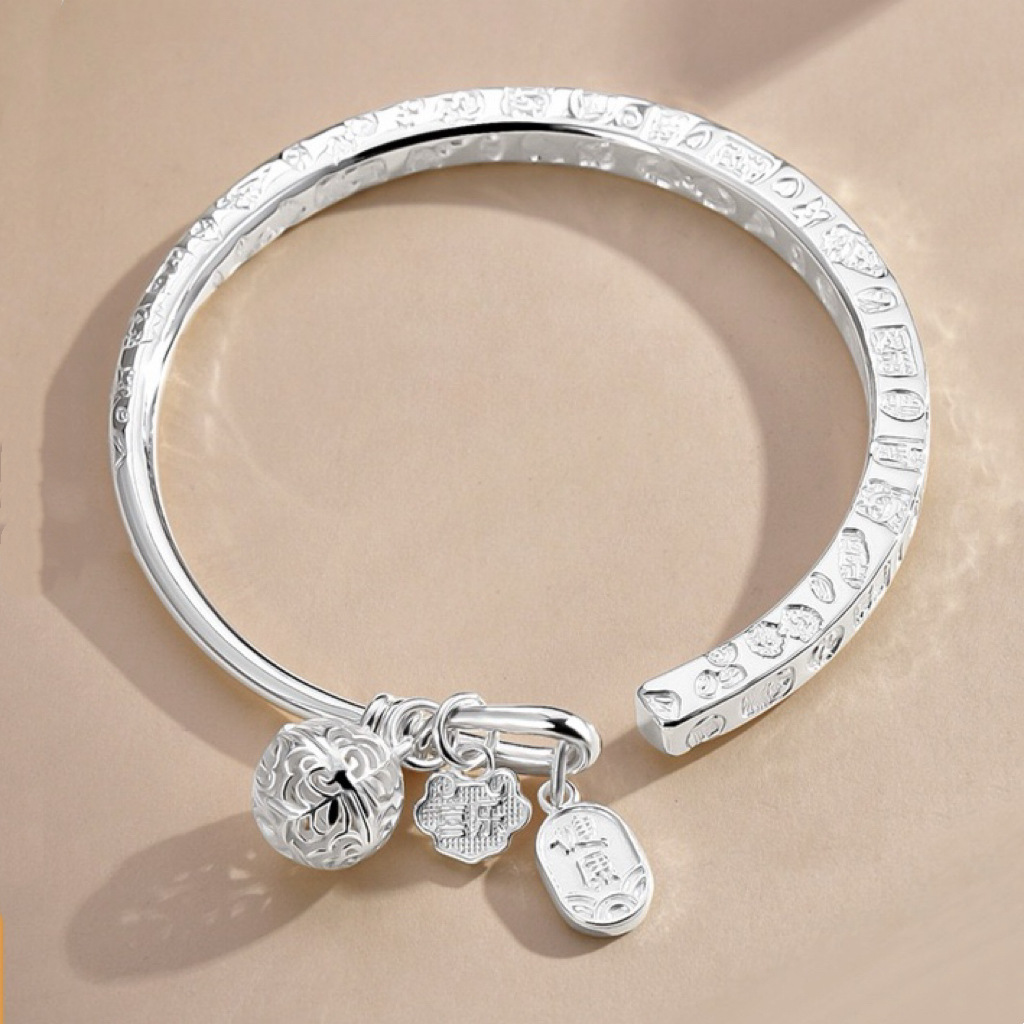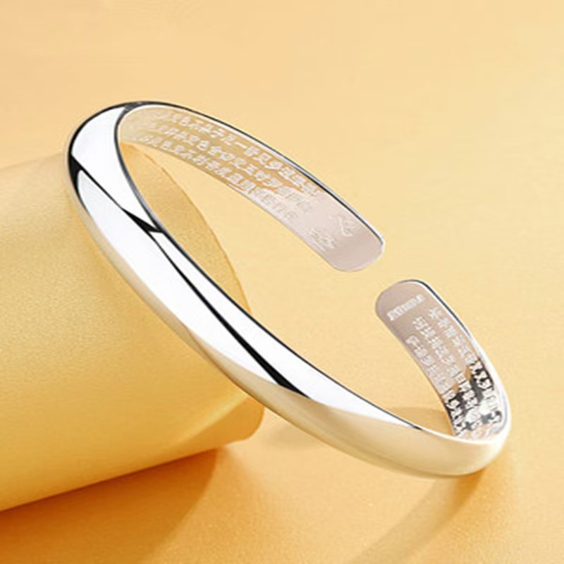 Leaves and Baby's Breath Ancient Heart Sutra Bracelet for Women, Open-Ended, Smooth, Simple, Imperial Concubine Buddhist Bracelet, Live Broadcast Same Style Silver Jewelry
