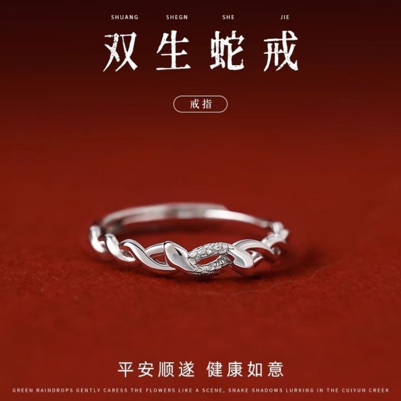 Twin Snake Ring Women's Snake Ring Niche Design Silver Jewelry 2025 Year of the Snake This Year of the Snake Gift for Girlfriends