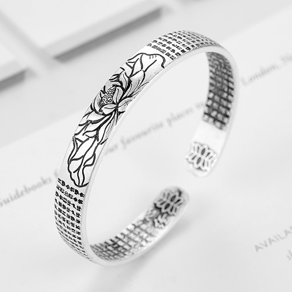 Ethnic Style Jewelry Bracelet Female Sutra Retro Opening Adjustable Bracelet Great Compassion Curse Lotus Heart Sutra Silver Bracelet