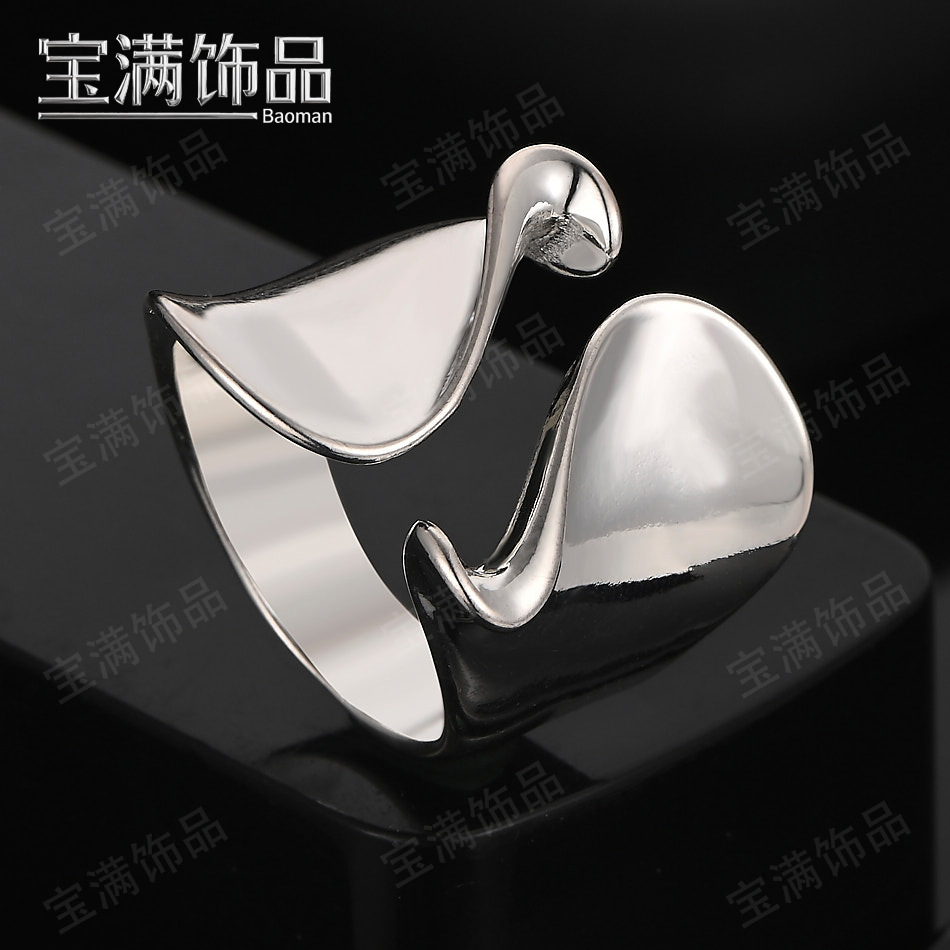 Xiyin Silver Jewelry Popular Ins Asymmetrical Ripple Shape Open Ring Plated 925 Silver Jewelry Women's Ring