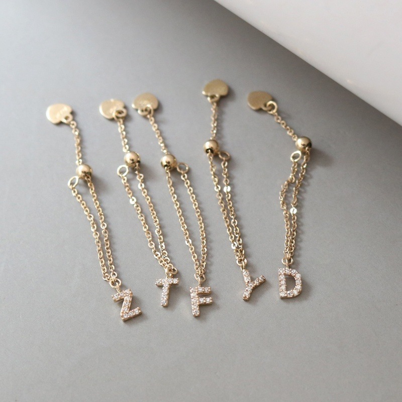 Name on Hand ~ S925 Sterling Silver Plated 18K Gold Letter Zircon Chain Ring Adjustable Simple Style