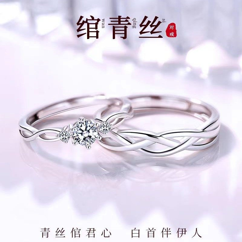 S999 sterling silver wan moss couple's ring for men and women a pair of niche high sense Tanabata Valentine's Day girlfriend gift