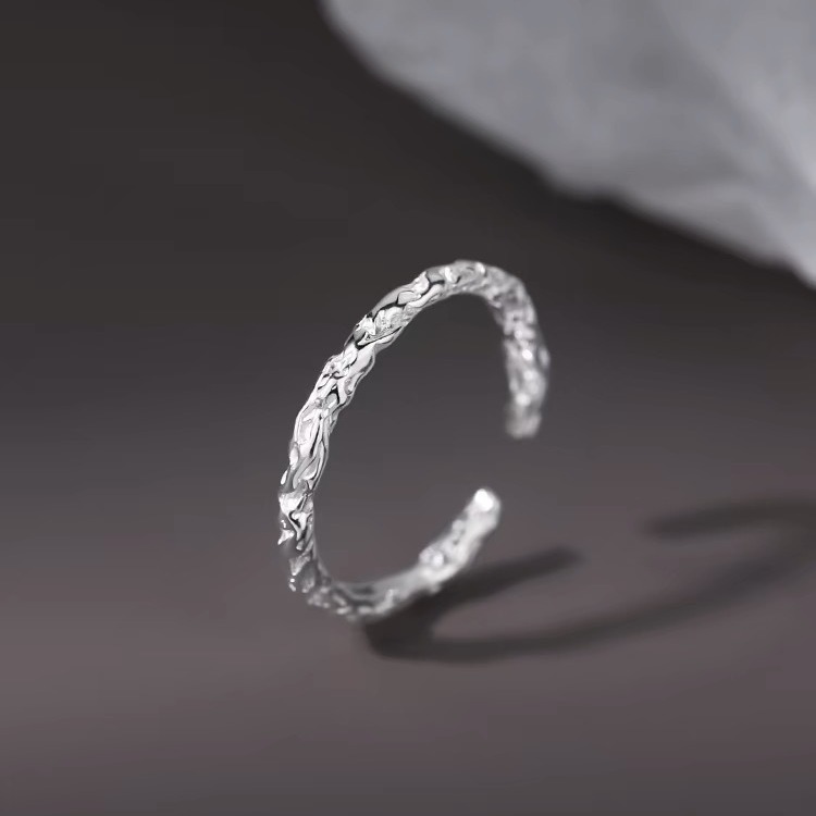 S999 Sterling Silver Pleated Ring Women's Niche Design Light Luxury Finger Ring Plain Ring Open Ring Ring Tail Ring Wholesale