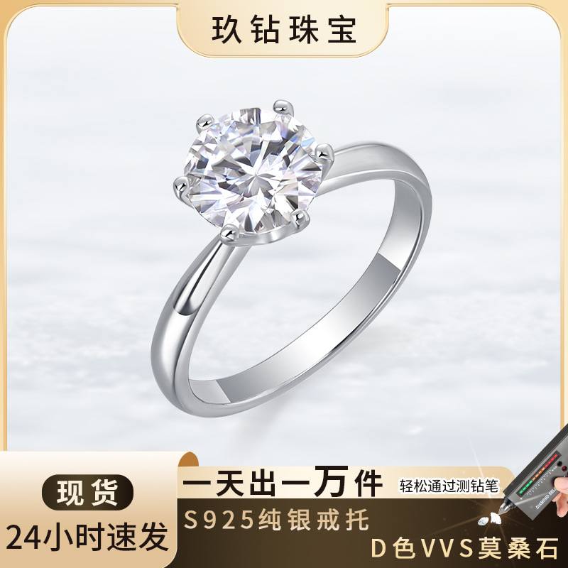 925 Sterling Silver 10 Carat Moissanite Ring Six-Claw Closed High-End Anti-Fading Jewelry Wholesale Accessories for Women