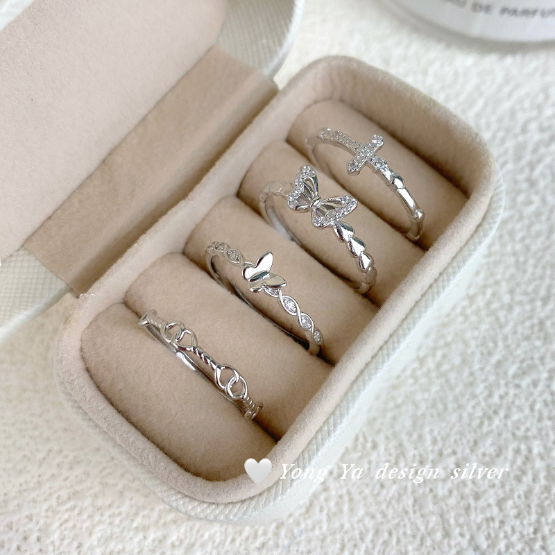 925 Sterling Silver Butterfly Cross Ring Fresh and Sweet Winter New Arrival All-match Artistic Style Gift-giving Bracelet for Hair