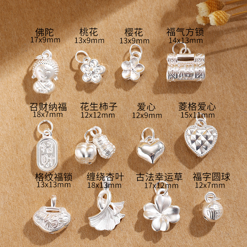 999 Silver Pendant Love Sterling Silver Cherry Blossom Necklace Bracelet Pendant Handmade Bracelet Beaded DIY Jewelry Accessories