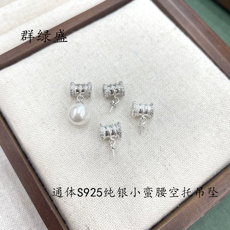 Qunlvsheng S925 sterling silver diamond-embedded small waist pendant semi-finished Pearl empty support diy necklace bracelet pendant for children
