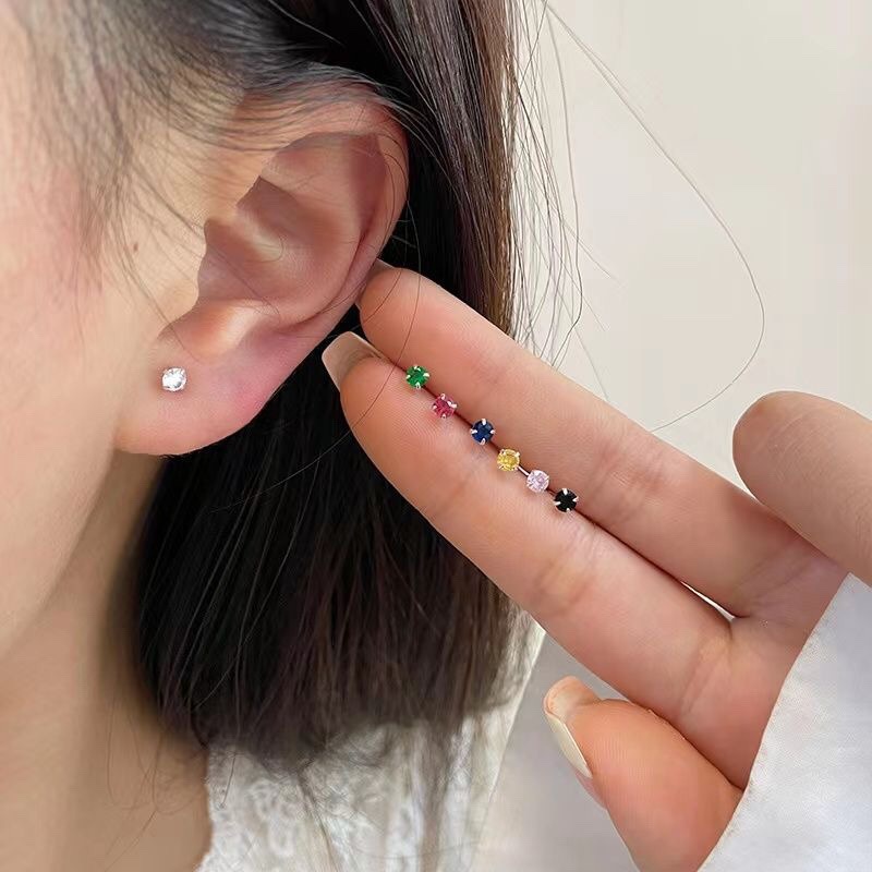 Ear-raising hole s925 silver ear nail colored diamond ear bone nail super flash flash rhinestone small ear nail delicate earrings