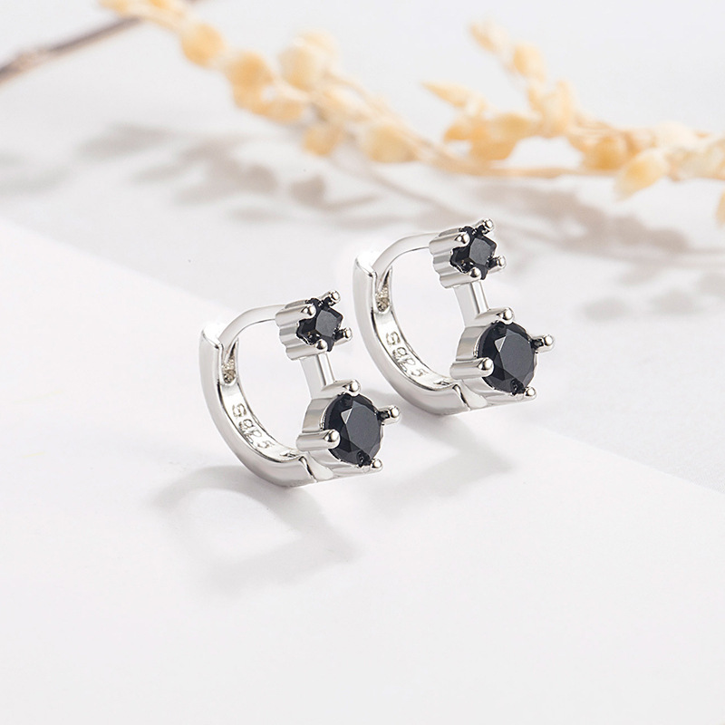 Silver S925 sterling silver small simple black double diamond earrings for women 2022 new trendy light luxury earrings for women