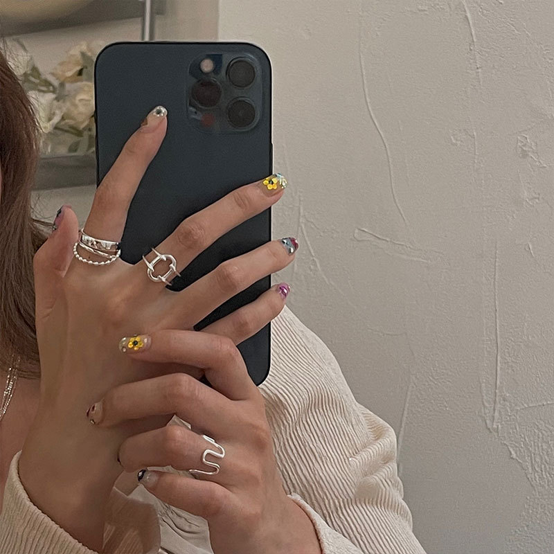 A variety of ring Women's Japanese and Korean simple fashion versatile 925 sterling silver geometric ring Korean popular food finger ring versatile