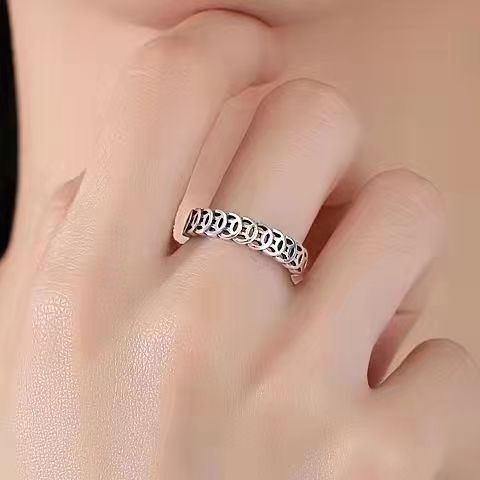 Jianjie Japanese and Korean Fashionistas Personality Retro Thai Silver Open Ring Women's European and American Court Style All-match Wide-face Index Finger Ring