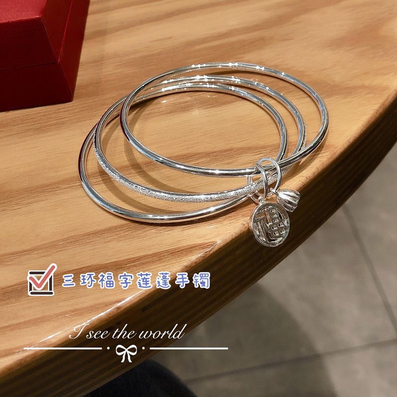 White Copper Three Life III Bracelet Fu Character Lotus Bracelet Ethnic Style Women's Peace Bell Two Shihuan Bracelet Silver Jewelry