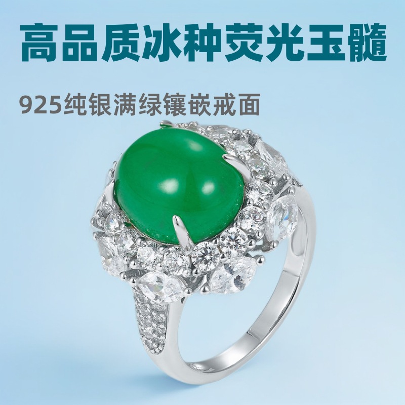 S925 Silver Ring Inlaid with Oval Cabochon Chrysoprase High-End Jewelry Ring Retro Fashion Gold-Plated Ring