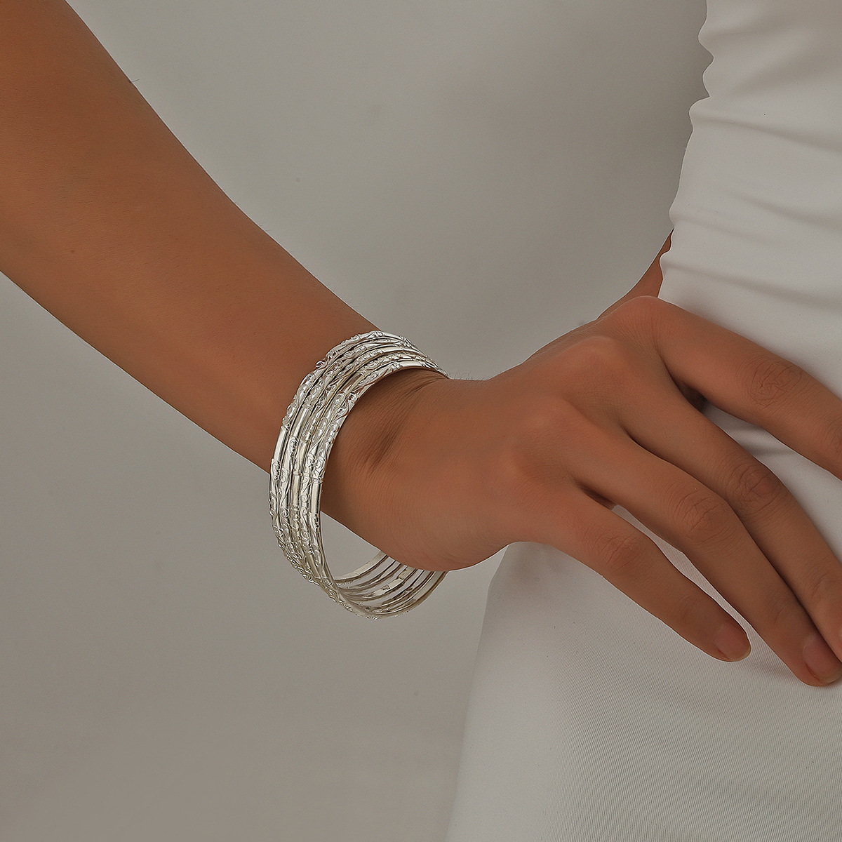 European and American Cross-Border Silver Printed Fashion Personalized Light Luxury High-End Minimalist Style Bracelet Multi-Piece Set Manufacturer