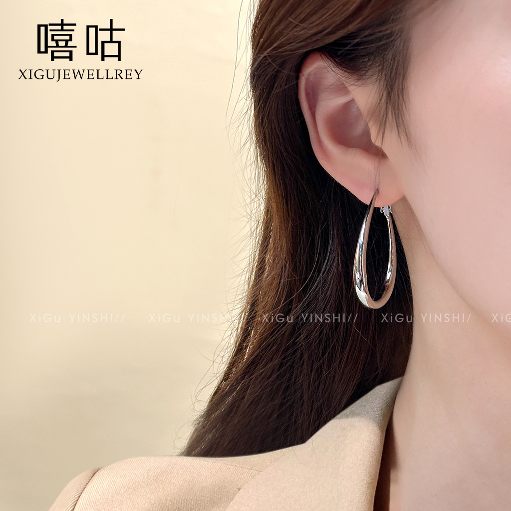Th0102 S999 Silver Needle Water Drop Earrings Plain Hoop Earrings 2025 New Hot Style High-End Retro Large Earrings