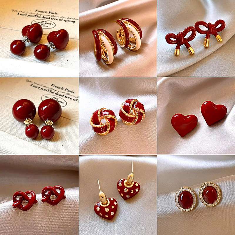 Ancola Red Earrings 925 Silver Needle Women's 2025 New Explosive Light Luxury High-end Autumn and Winter Vintage Red Earrings