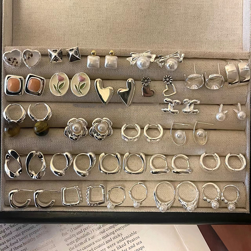 s999 Sterling Silver Bead Ring Earrings Women's Simple Light Luxury High-end Sense Earrings Men's Niche Korean Style Vintage Earrings Women