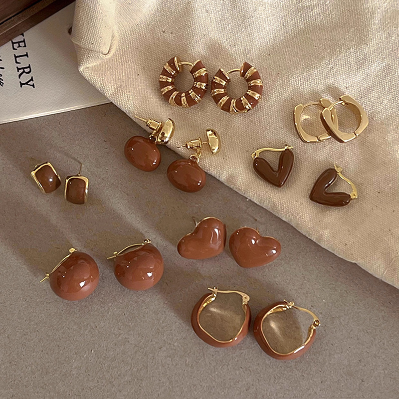 Autumn is thick ~ French gentle temperament brown earrings autumn and winter warm Maillard flowers geometric earrings women