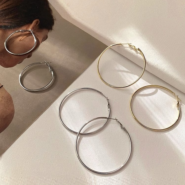999 Sterling Silver Needle Large Circle Plain Ring Earrings Women's High-end Ear Clip Ear Stud 2025 New Explosive Ear Ring Earrings