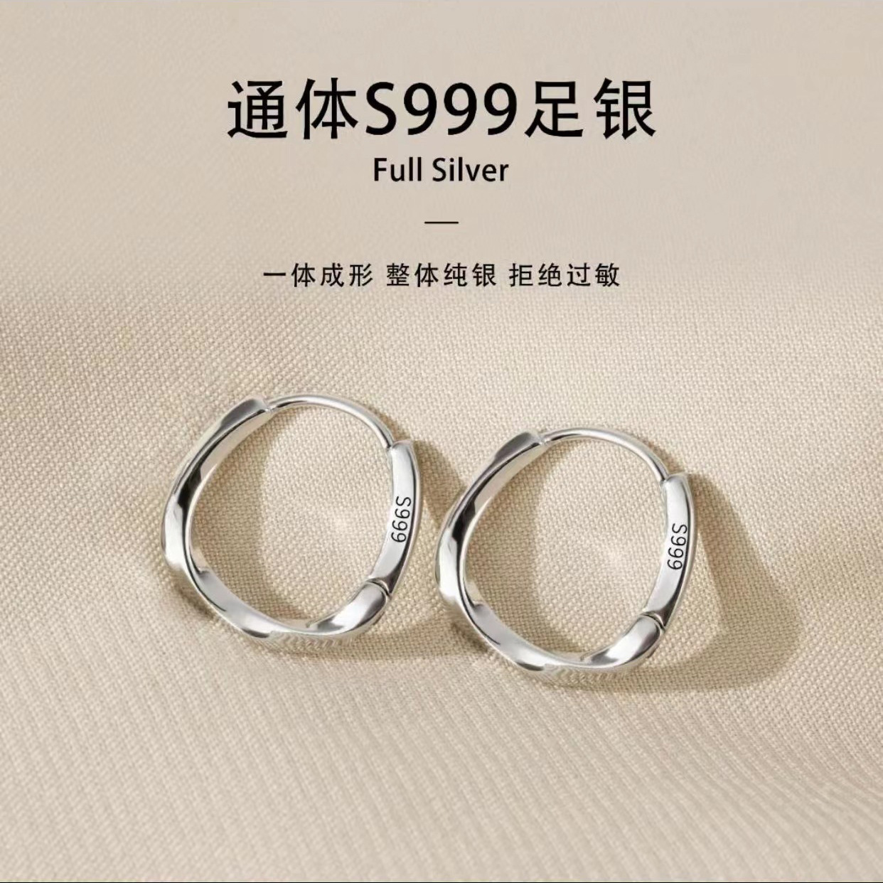 S999 Sterling Silver Mobius ring earrings women's sterling silver earrings 2024 new fashion earrings women's niche design sense
