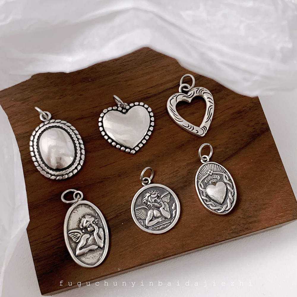 S925 sterling silver vintage personalized relief love pendant niche design high sense angel baby coin pendant
