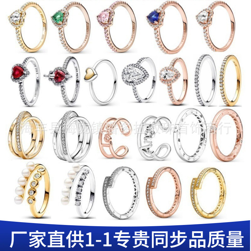 Panjia Dora Ring 925 Sterling Silver Noble Heart Red Love Ring Pearl Gold Multi-Ring Ring