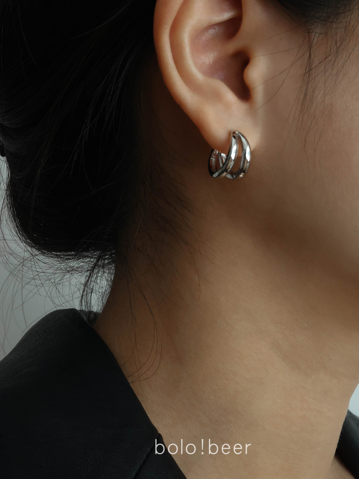 925 Silver Double Arc Ring Earrings Cold Wind Female Circle Ear Ring Niche Design Round Earrings Couple Ear Trendy