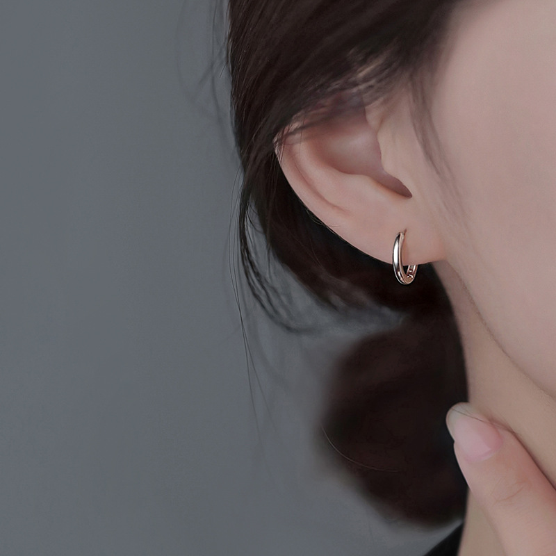 S999 Pure Silver Earrings New Light Luxury Simple Niche Circle Salt Style Ear Bone Studs Temperament Minimalist Style Pure Silver Earrings