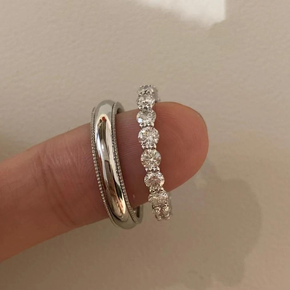S925 Sterling Silver Simple All-match Romantic Couple Proposal Ring Stacked with Rings of Diamond Ring for Men and Women