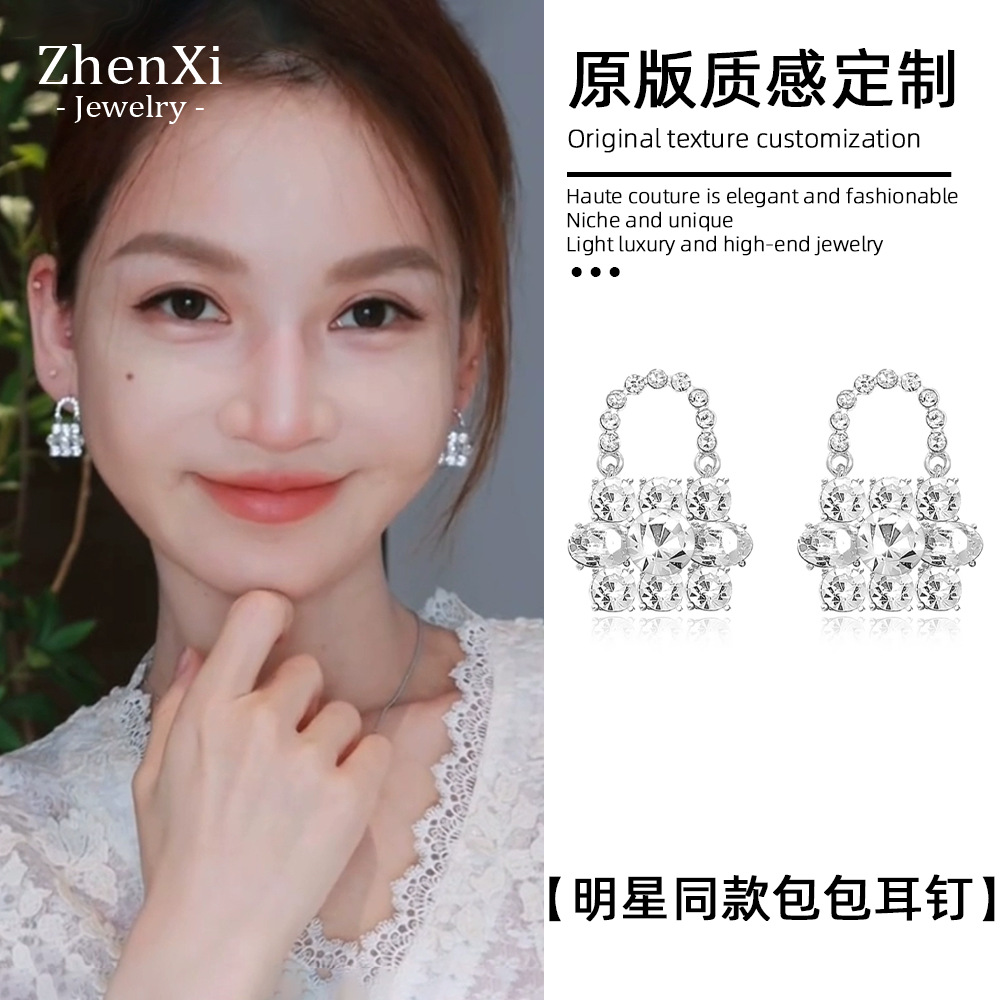 Silver Needle Zircon Butterfly Bag Earrings French Niche Romantic Heart Design Earrings Accessible Luxury Sparkling Earrings for Women
