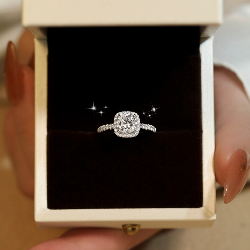 Fat Dong Lai Style Small Sugar Cube Ring S925 Sterling Silver Moissanite Diamond Very Beautiful Ring Sugar Cube Women's Niche Design