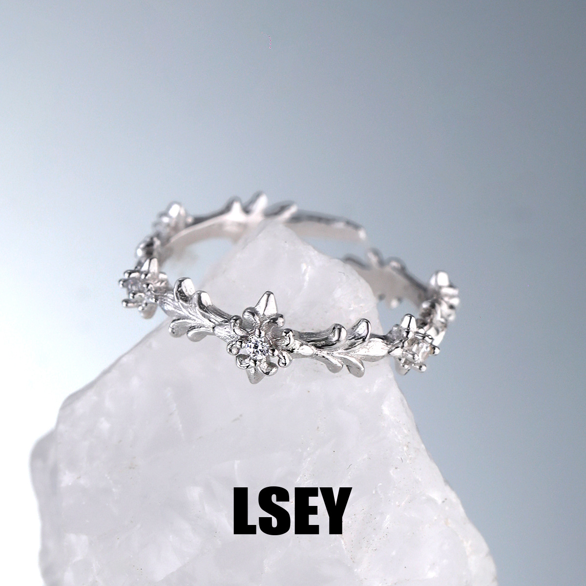 White silver knock flash S925 sterling silver personalized car flower ring women's fashion Korean ring tide people hand jewelry wholesale