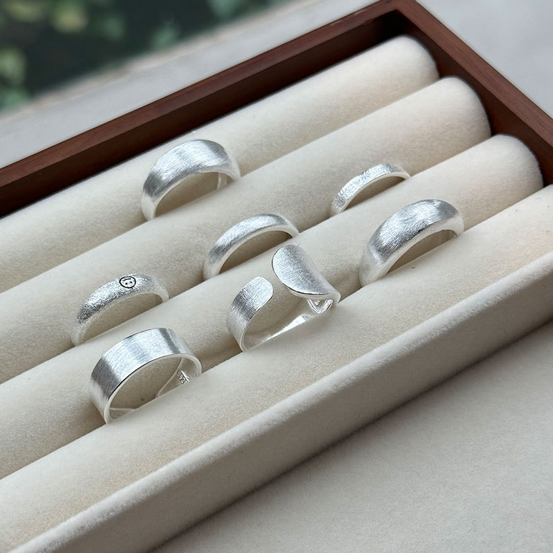925 Sterling Silver Ring Frosted Brushed Craft Combination Index Finger Ring Opening Design Bright Silver Versatile Ring