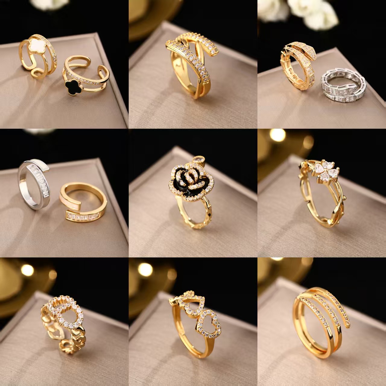 Korean Version Cross-Border Hot-Selling Light Luxury Micro-Inlaid Zircon Ring for Women, Fashionable Versatile Personality Ins Open Ring Jewelry