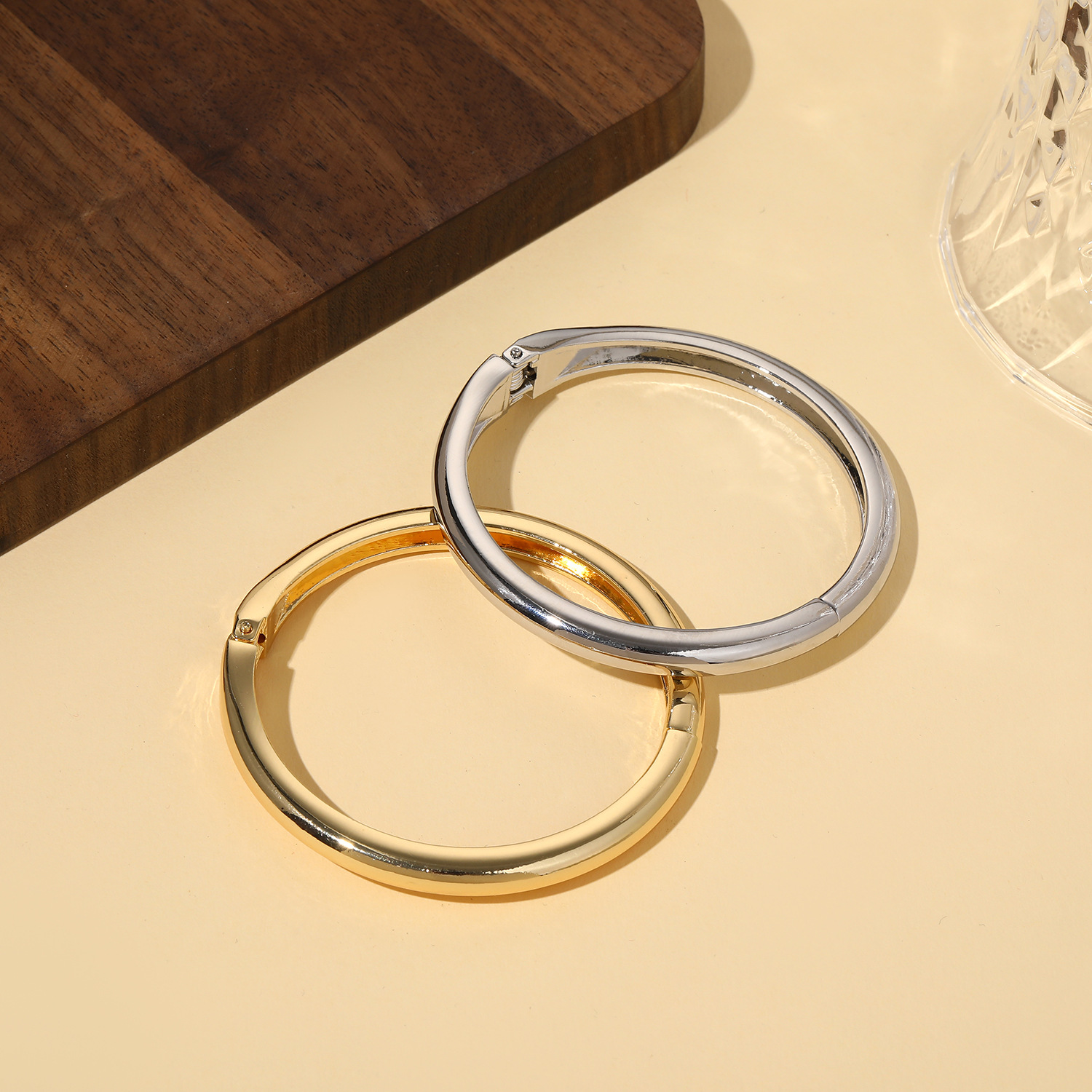 European and American New Style Bracelet with a High-End Feel, Light Luxury Strip Bracelet, Fashionable Round Alloy Smooth Personalized Open Bangle