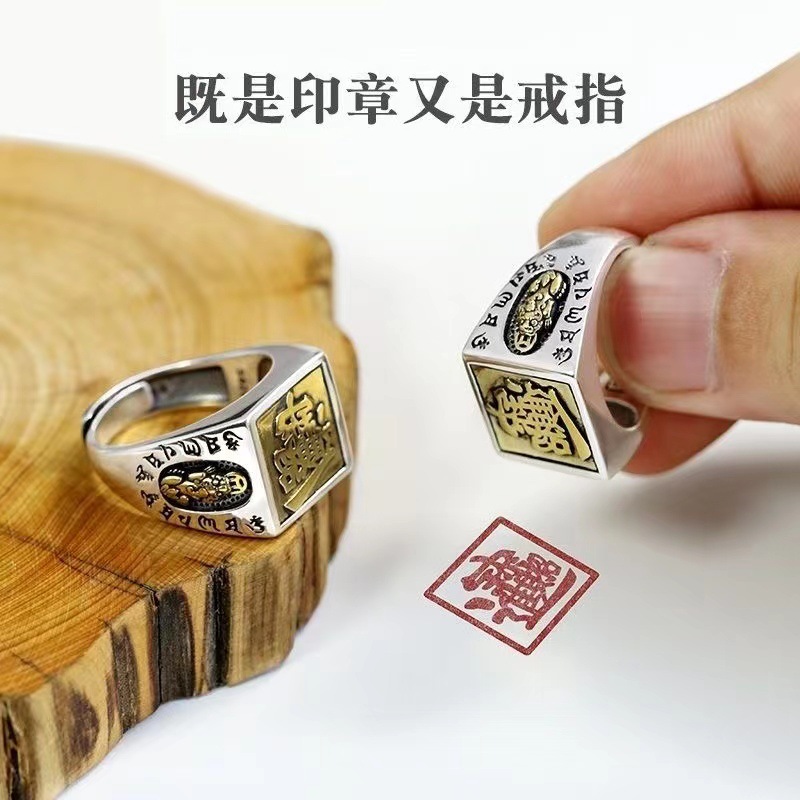 S925 sterling silver auspicious ring men's fashionable retro popular personalized domineering adjustable open ring ring