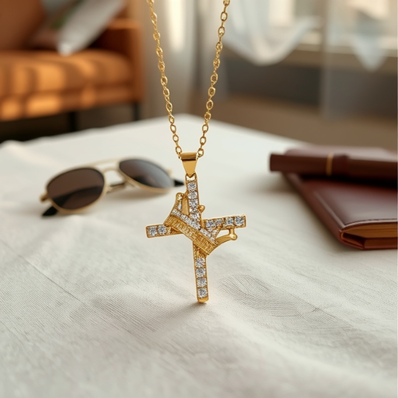 Pendant Necklace Stainless Steel Men's Multi-layer Cross with Diamond Zircon Pendant European and American Popular Jewelry